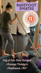 We use a staff or a pole to ensure our balance creating a tripod effect with our body so we remain true to our mission of creating massage services that feel yummy yet efficient for our therapists’ bodies as well. We never want to compromise either person in the therapeutic session.
